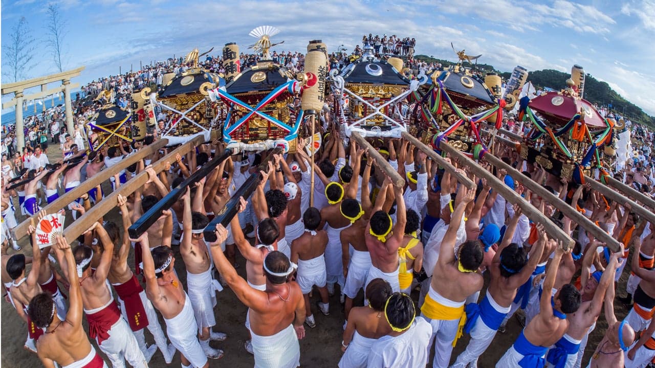 約1200年前の807年頃に始まったとされる神事で、ご祭神玉依姫命とその一族の神々が由縁の釣ヶ崎海岸で年に1度再開されるという壮大な儀礼。
