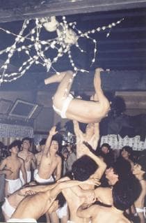 「裸まつり」は鎌倉時代から続く伝統行事。暗闇の中で大太鼓を合図に、身を清めた15歳以上の独身男性が梁に供えたマユ玉を奪い合います。マユ玉を手にした者はその年、良縁にめぐりあえるといわれています。