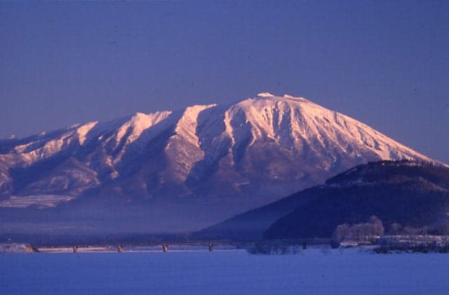 雄大な岩手山の麓を歩く。スノーシューを使い、雪原や森の中を散策する。