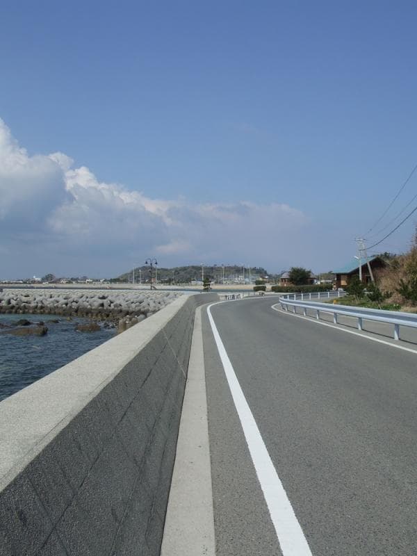 島のシンボルにもなっている矢筈岳(やはずだけ)沿いの東海岸を走る「ひめしまブルーライン」。松原ー大海ー両瀬を結ぶ海岸道路は、潮風や潮の香り、絶景の海を楽しみながらのサイクリングに最適です。広い歩道もついています。寄り道スポットとして、珍しい地層が見られる大海海岸がおすすめです。