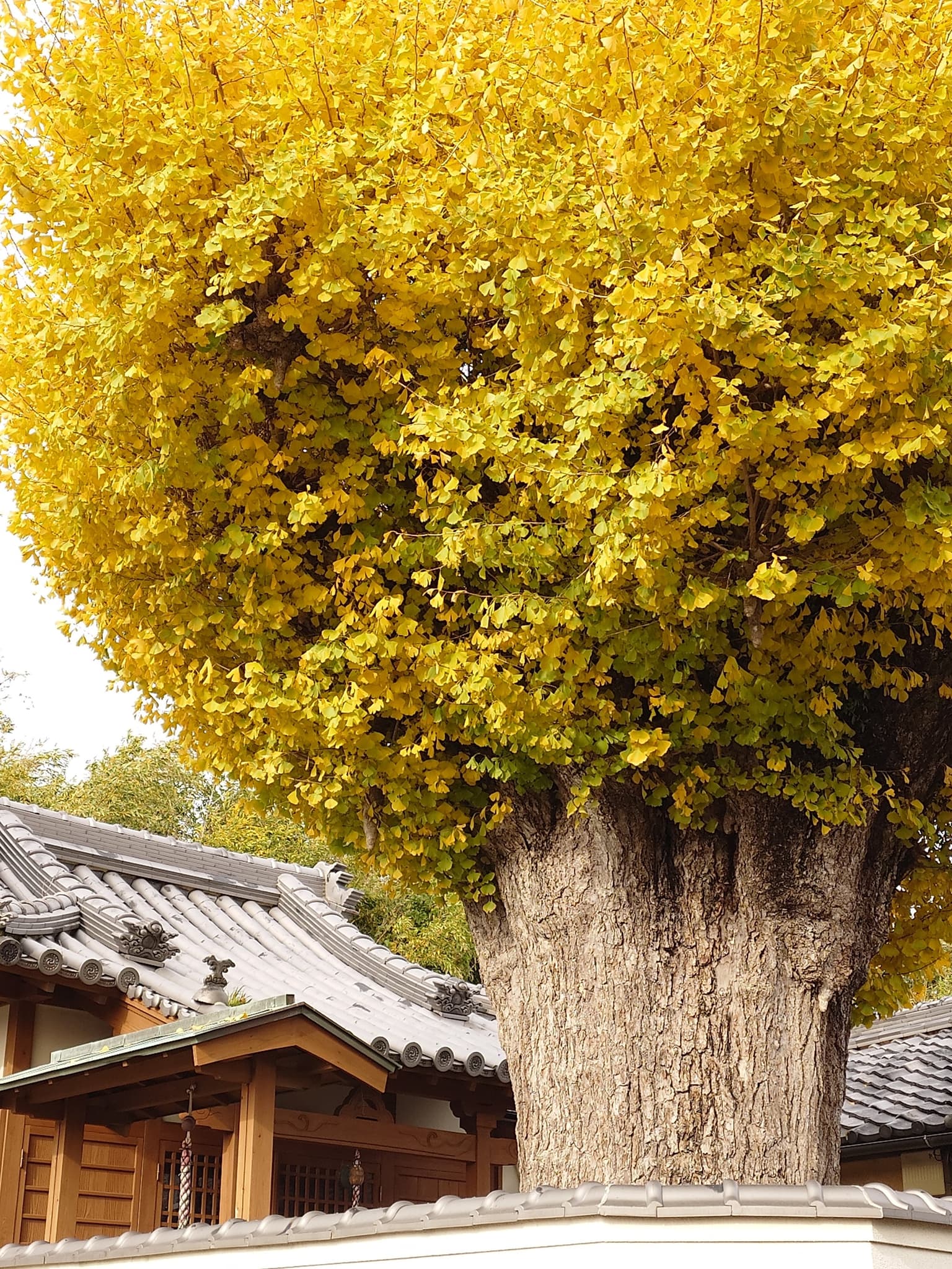地元の人たちに古くから子安地蔵、延命地蔵として信仰の厚かった地蔵尊。地蔵尊の横には、樹齢300年の大銀杏(県指定天然記念物)がそびえている。
