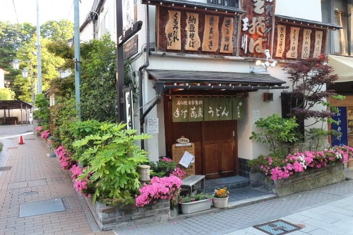 渋温泉街にあるそばの老舗。そば粉は地元で契約栽培した玄そばを使用。禁煙の店内には石臼を備えた蕎麦打ち場が有る。口の中にそばを含めば、そば本来の旨味が実感できる。そばプリン(540円)、そばソフトクリーム(430円)、そばクリームタルト (380円)などデザートメニューは、そばを注文した人のみ注文できる。