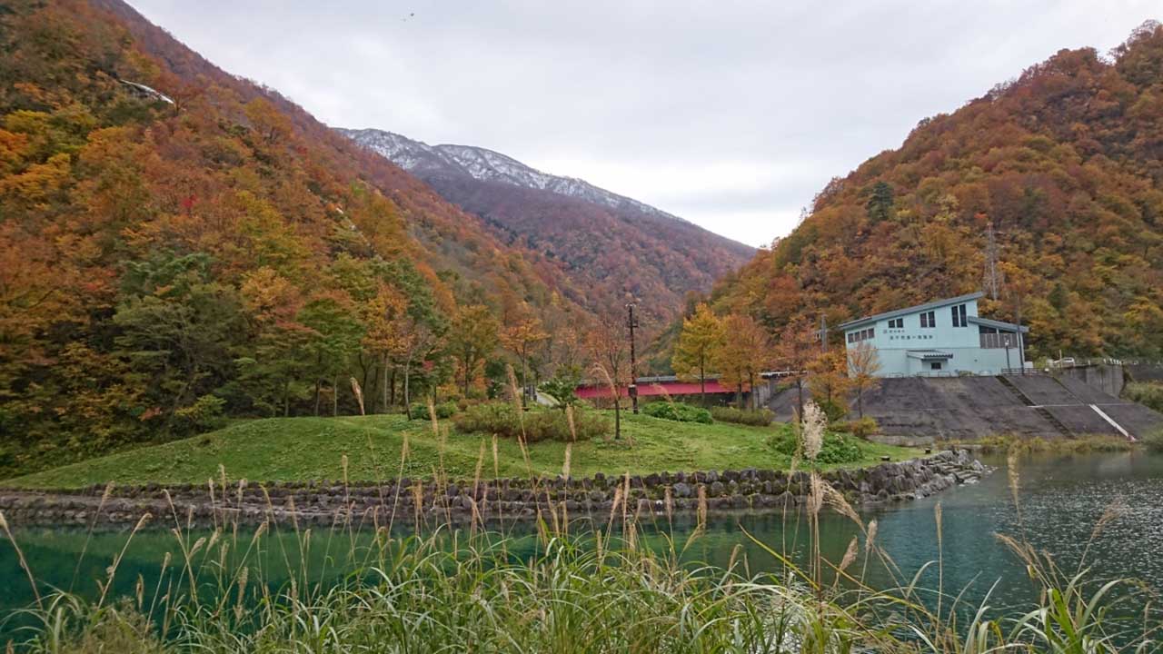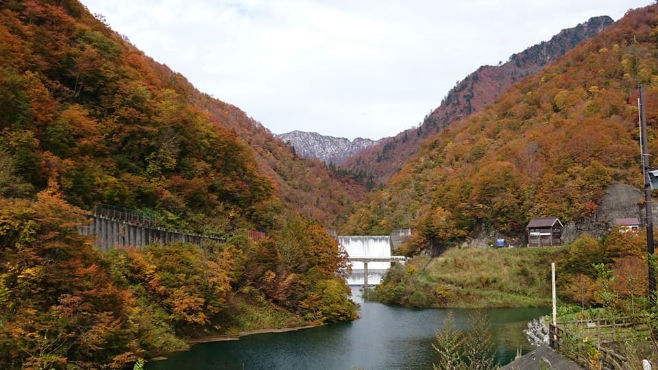 五十沢地区にあるしゃくなげ湖(三国川ダム)周遊コースは紅葉観光の名所。