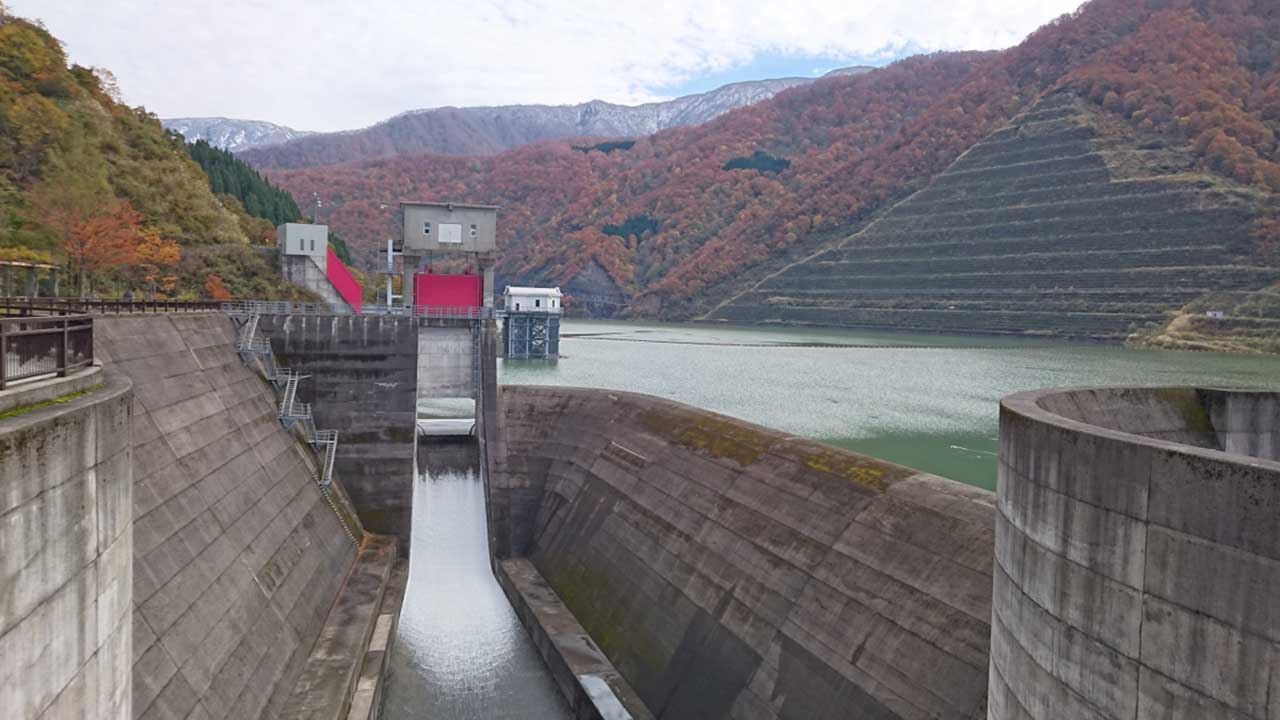 三国川ダムは越後三山を源にする三国川の水を利用することと、洪水を防ぐことの2つの目的のために作られたダムです。