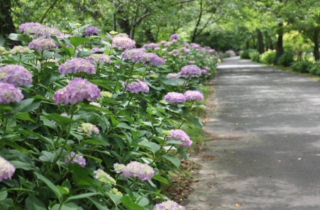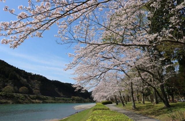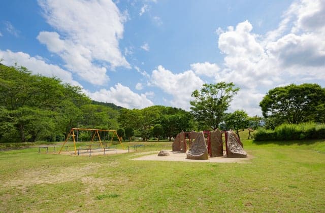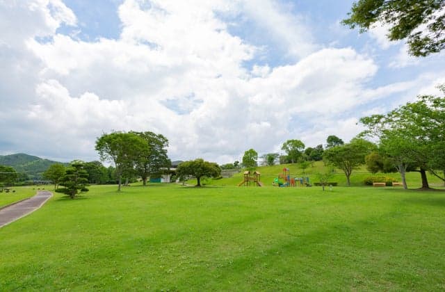 総面積12haの公園内には、淡緑色も鮮やかな芝生広場やグラウンドゴルフ場、テニスコート、楽しい遊具がいっぱいの子供広場、春には花見客で賑わう桜並木、ウォータースライダーなどを備えた『遊水プール・鏡』などがあります。