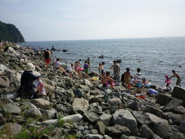 函館山の裏手にある岩場の海水浴場であり、とても透明度が高く海底では海草類がゆらゆらと揺らいでいます。岩場には様々な水生生物がいて、磯遊びも楽しめます。