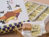 栗餡を、バターでしっとり焼き上げた生地でくるみました。栗餡のほんのりした甘さが人気です。金色の包装につつまれているので、箱を開けるとまるで黄金のようなおめでたさが伝わるお菓子です。お祝いなどのご贈答品にどうぞ。