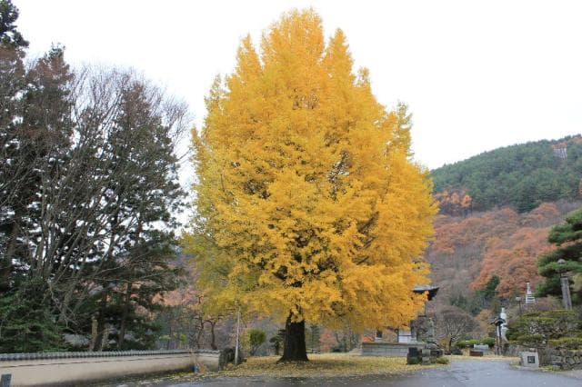 七色大カエデの2倍の大きさとなり、真っ黄色に輝く大きな銀杏は一際目立ち、圧巻の一言!