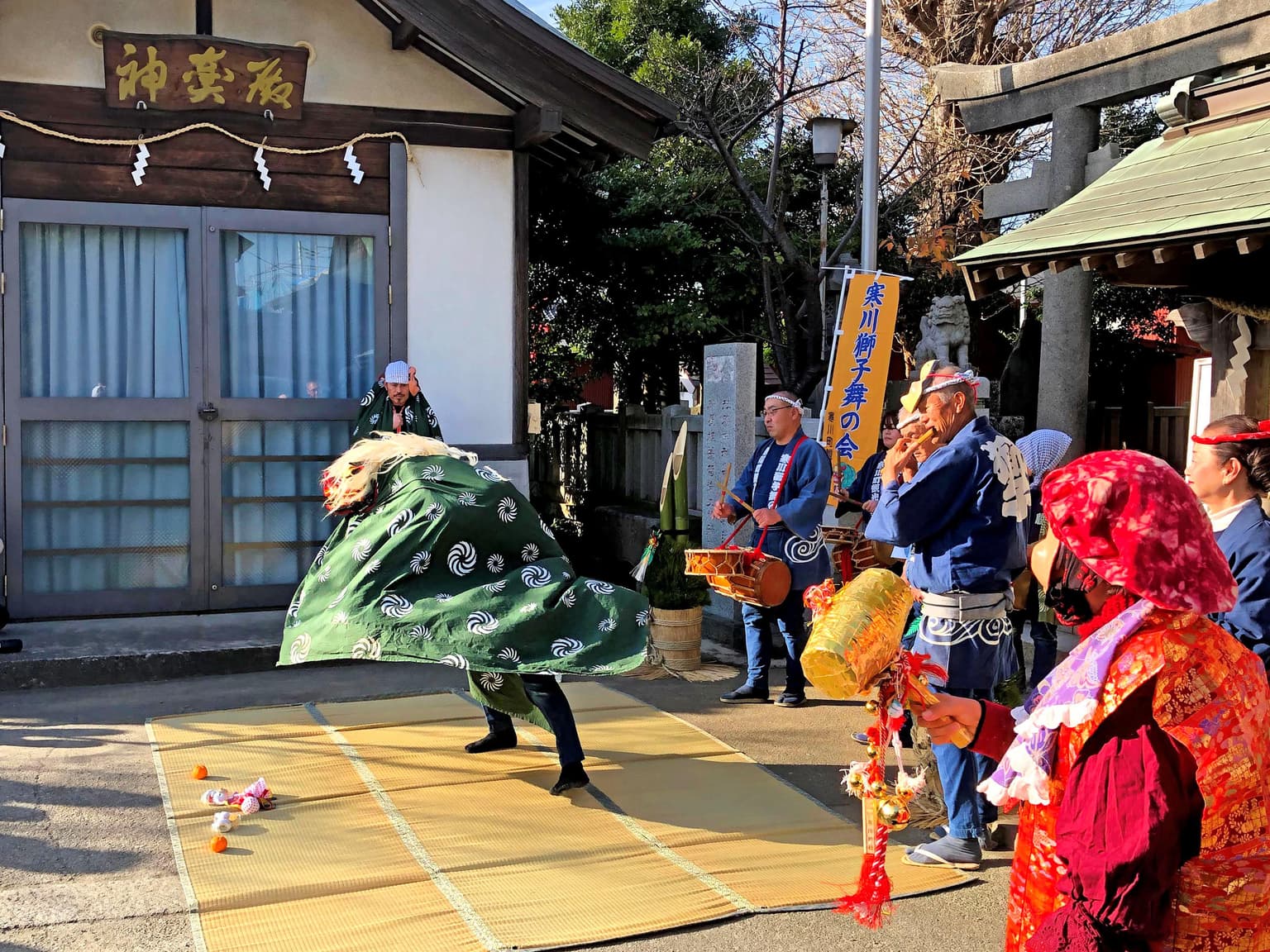 寒川獅子舞の会のメンバーが寒川町内を練り歩いて、各所で獅子舞を披露し新しい年の幸せを願います。