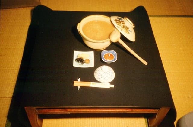本宮町内湯の峰、渡瀬温泉にあり、温泉の湯で一気に炊き上げたおかゆで、温泉特有のイオウの匂いがかすかに残っている。温泉の効力も期待できる。