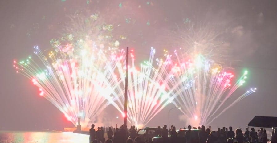奈良時代創建の宇佐市長洲にある粟島神社のみなと祭りは、海上安全や安穏無事を願うお祭りです。粟島神社の例祭でもあるみなと祭りに華を添えたい、そんな思いから始まった花火大会も今年で64回目を迎えます。