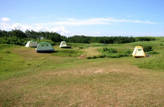 このダイナミックな日本海に面した海岸沿いに千里浜なぎさドライブウェイがあり、魅力のひとつとなっている。潮風が心地よいキャンプ場。