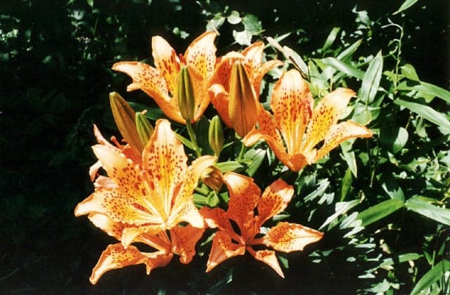 海岸添いの山中に橙色の美しい花を1本の茎に数個上向きにつけ咲いている。
