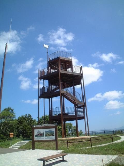 清里オートキャンプ場、江南パークゴルフ場近くにそびえる展望台。斜里岳を一望でき、晴れた日の夜空には満点の星々が一面に広がる。