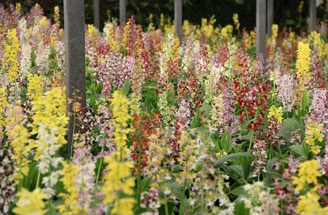 400種・約5万株のエビネが温室の中で栽培され、園内は、白・黄・紫と一面を美しい花で彩られ、訪れる見物客を楽しませています。また、エビネの販売も行われます。