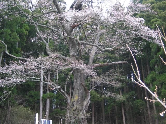常盤城址の南側麓にあるヒガンザクラで、その昔この桜の開花を目安に水稲の種を蒔いたことから種蒔き桜とも称されています。国道288号線から細い道を入って小高い山の中腹に見えます。