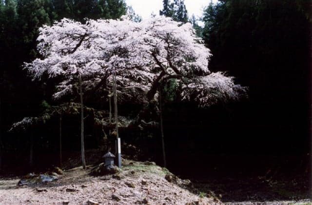 桜の根元には小さな石の祠がまつられ「嫁ぎ先から生家に帰ることが許されないことを思い悩み、池に身を投じた娘の供養のために親が植えた」という言い伝えがあります。(滝根三大枝垂桜の一つ)