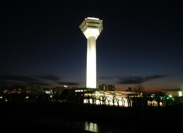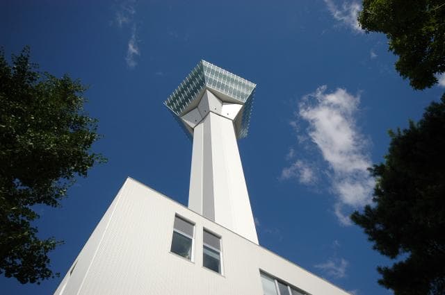 2006年4月に高さ107mの新タワーがオープン。90mの展望台からは特別史跡五稜郭跡と函館市街地が一望できる。