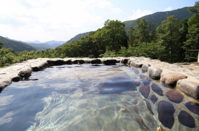 標高700mの山間地に位置し、岡山県では一番高い場所にある、環境に優しい自然エネルギー(太陽熱)を利用した温泉です。開放感に溢れた露天風呂に入りながら、四季折々のパノラマ風景を満喫でき、夜には息をのむほどの満天の星空も見られます。地元で「ヒラメ」と呼ばれる鏡野町の特産品「アマゴ」や地元の山菜を使った定食が人気で、素朴な味わいで美味しいと評判です。