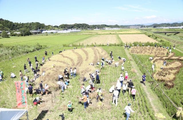 色の異なる古代米を使って、水田に巨大な絵を浮かび上がらせる「田んぼアート」。内田地区の水田で例年5月中旬に田んぼアートの苗を植える、お田植祭が行われます。巨大な田んぼアート作品が完成すれば、田んぼを見下ろすやぐらに登って、アートの全貌を観賞できます。田んぼアートの最後に行われるのが収穫体験。例年9月中旬頃に頭を垂れる古代米を手作業で刈り取ります。餅つき体験やふかし芋の振る舞い、農産品の販売も実施されます。