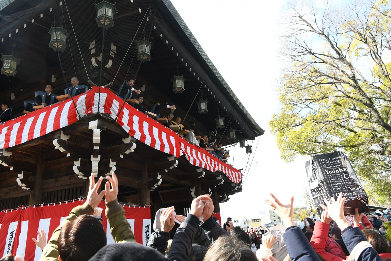 英語名:Ishikiri-tsurugiya Shrine Setsubunsai Mamemaki-gyoji (Bean throwing event at the traditional end of winter festival)