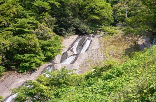 2本の滝がひとつに溶けあい夫婦のようであることが滝名の由来。本流の女滝と支流の男滝が並んで流れている。