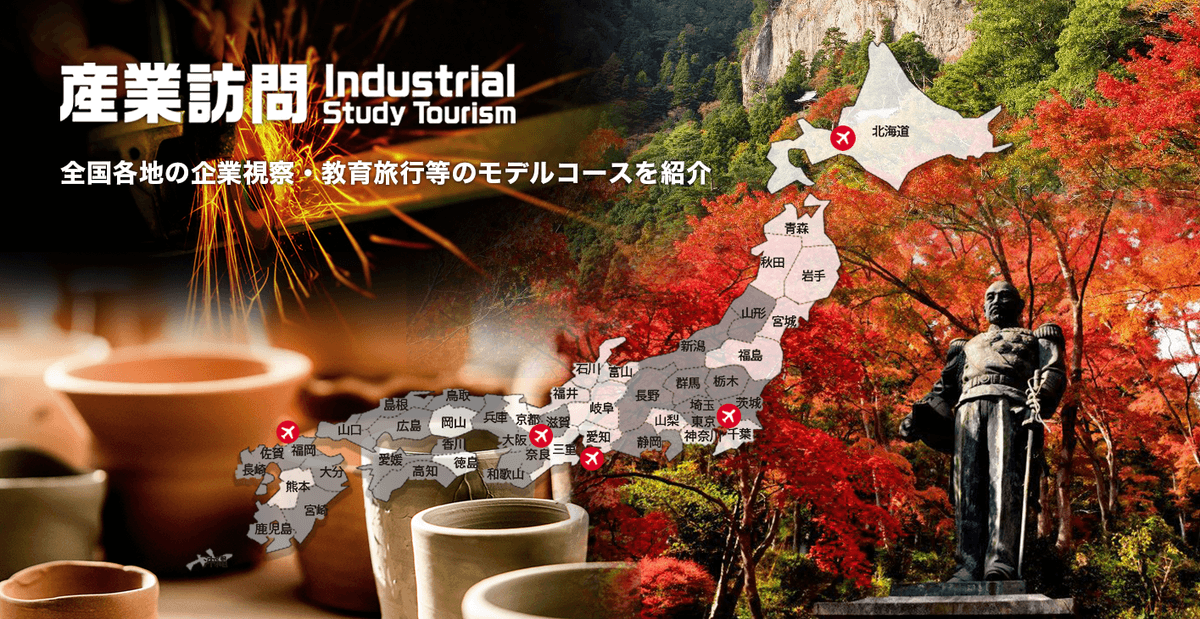 産業観光とは歴史的・文化的価値のある産業文化財(古い機械器具、工場遺構などのいわゆる産業遺産)、生産現場(工場、工房等)及び産業製品を観光資源とし、それらを通じてものづくりの心にふれるとともに、人的交流を促進する観光活動をいう。 注)産業の中には一、二、三次各分野の産業を含む。